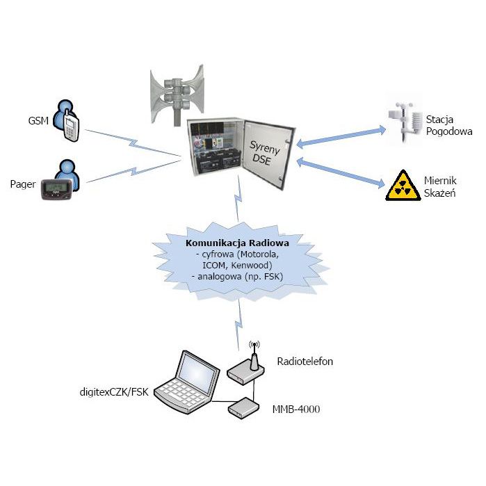 digitexCZK/FSK® to nowoczesny, niezawodny i szybki system alarmowania ludności wykorzystujący radiową, szyfrowaną transmisję modemową FSK. System ma zastosowanie w sieciach alarmowania: Zarządzania Kryzysowego, Straży Pożarnej, zakładów przemysłowych, na zaporach wodnych i terenach zalewowych, w bazach wojskowych, na lotniskach i dużych obiektach sportowych.